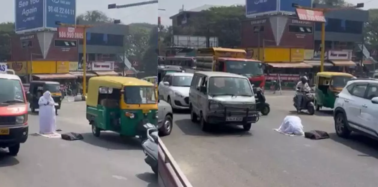 സ്വത്തുതര്ക്കം; നടുറോഡില് നിസ്കരിച്ച് യുവതി