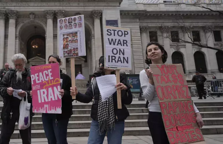 ഇറാനെതിരായ ആക്രമണം നിര്ത്തണമെന്ന് ആവശ്യപ്പെട്ട് ന്യൂയോര്ക്കില് പ്രതിഷേധം, ചിത്രങ്ങള്