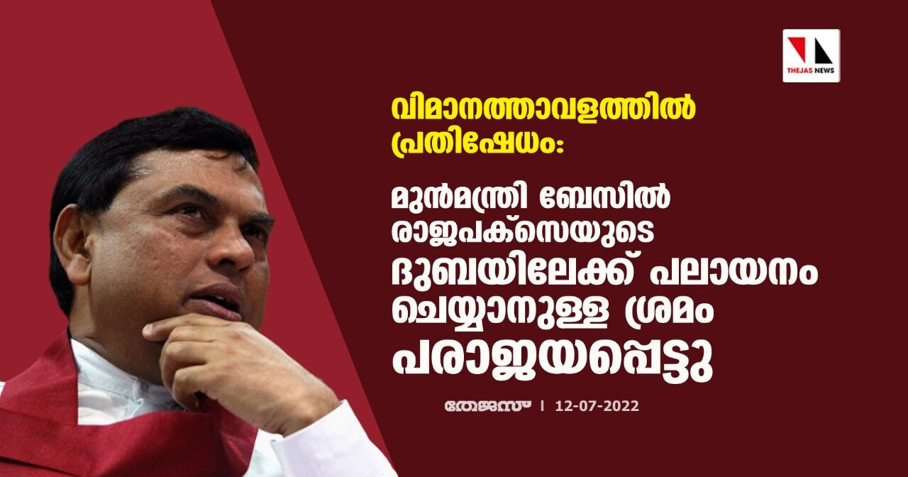 വിമാനത്താവളത്തില് പ്രതിഷേധം: മുന്മന്ത്രി ബേസില് രാജപക്സെയുടെ ദുബയിലേക്ക് പലായനം ചെയ്യാനുള്ള ശ്രമം പരാജയപ്പെട്ടു