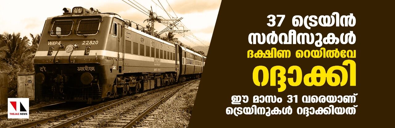 37ട്രെയിന് സര്വീസുകള് ദക്ഷിണ റെയില്വേ റദ്ദാക്കി; റദ്ദാക്കിയത് ഈ മാസം 31 വരെ