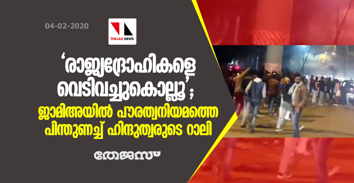 'രാജ്യദ്രോഹികളെ വെടിവച്ചുകൊല്ലൂ'; ജാമിഅയില് പൗരത്വനിയമത്തെ പിന്തുണച്ച് ഹിന്ദുത്വരുടെ റാലി