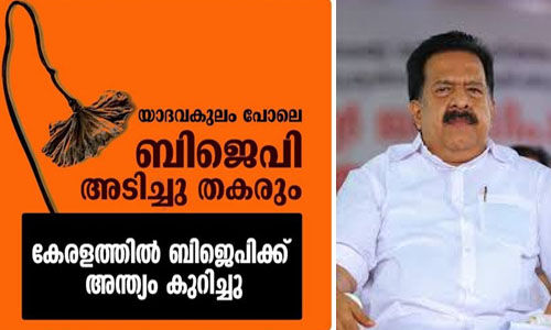 പഞ്ചായത്ത് തിരഞ്ഞെടുപ്പോടെ സംസ്ഥാനത്ത് ബി.ജെ.പിയുടെ അന്ത്യം കുറിക്കും. കേരളത്തില് ബി.ജെ.പിക്ക് ഒരടി പോലും മുന്നോട്ടു പോകാന് പറ്റാത്ത അവസ്ഥയാണ്. കേരളത്തിലെ ബി.ജെ.പി നേതൃത്വം യാദവ കുലംപോലെ അടിച്ചുതകരും. ഇപ്പോള് തന്നെ പാര്ട്ടിക്കുള്ളിലെ അന്തഃഛിദ്രം മൂലം മുന്നോട്ടു പോകാന് പറ്റുന്നില്ല. കഴിഞ്ഞ പാര്ലമെന്റ് തെരഞ്ഞെടുപ്പിലും വീരവാദങ്ങള് മുഴക്കിയ പാര്ട്ടിയാണ് ബി.ജെ.പി. ഒരു സീറ്റ് പോലും കിട്ടിയില്ല. നിയമസഭയില് ആകെ കിട്ടിയത് ഒരു സീറ്റാണ്. പഞ്ചായത്ത് തിരഞ്ഞെടുപ്പില് ബി.ജെ.പിയുടെ സ്ഥിതി ദയനീയമാകും. ഈ ബി.ജെ.പിയാണ് കോണ്ഗ്രസ് ഇല്ലാതാകുമെന്ന് പറഞ്ഞു നടക്കുന്നത്. ഇല്ലാതാകാന് പോകുന്ന കക്ഷി ബി.ജെ.പിയായിരിക്കും- ചെന്നിത്തല ഫെയ്സ്ബുക്കില് എഴുതിയ കുറിപ്പില് പറയുന്നു.