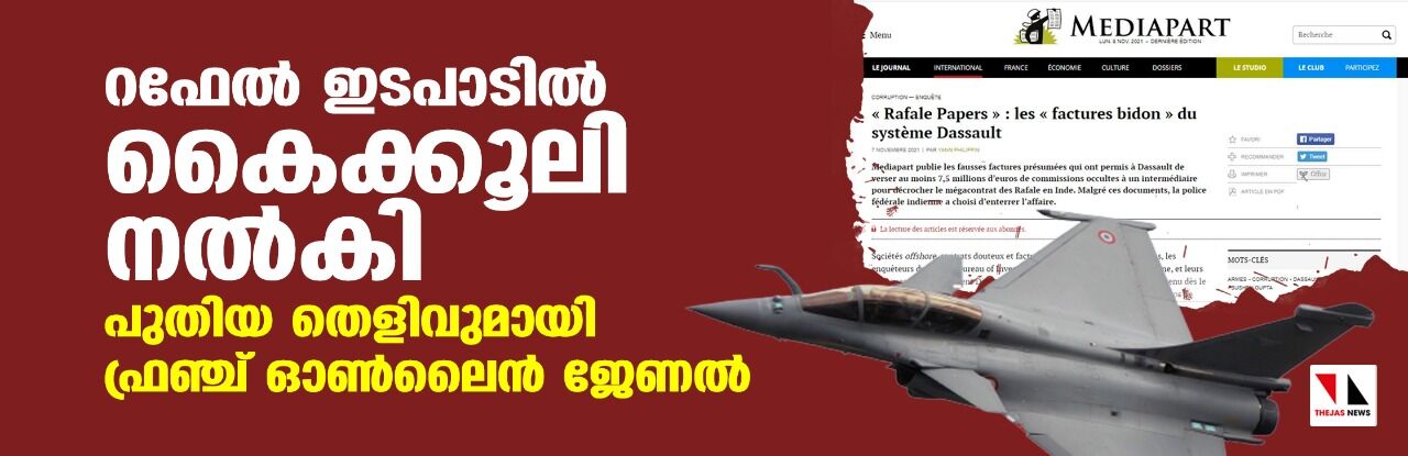 റഫേല് ഇടപാടില് കൈക്കൂലി നല്കി; പുതിയ തെളിവുമായി ഫ്രഞ്ച് ഓണ്ലൈന് ജേണല്