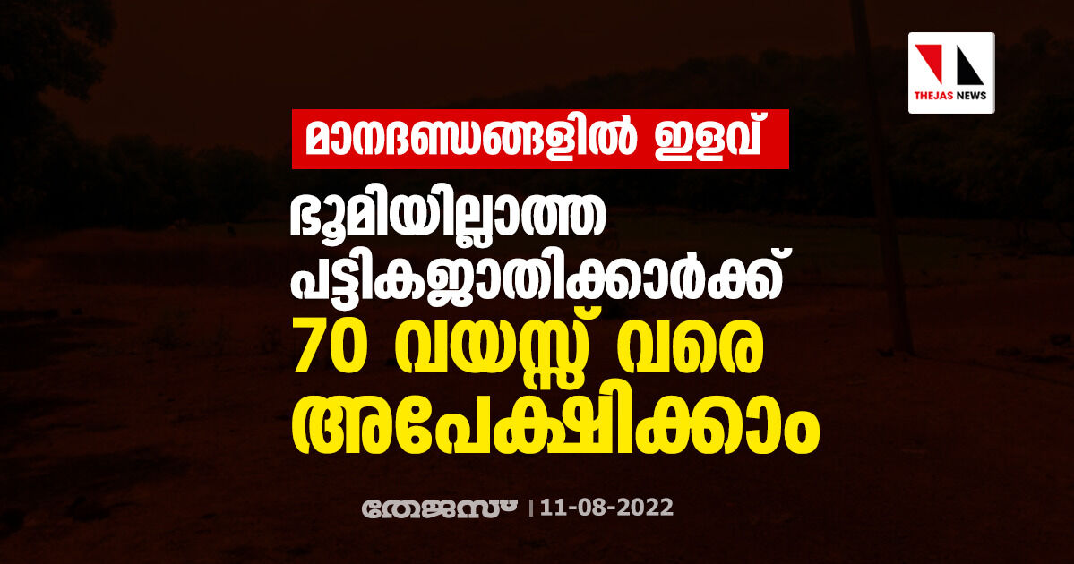 മാനദണ്ഡങ്ങളില് ഇളവ്; ഭൂമിയില്ലാത്ത പട്ടികജാതിക്കാര്ക്ക് 70 വയസ്സ് വരെ അപേക്ഷിക്കാം