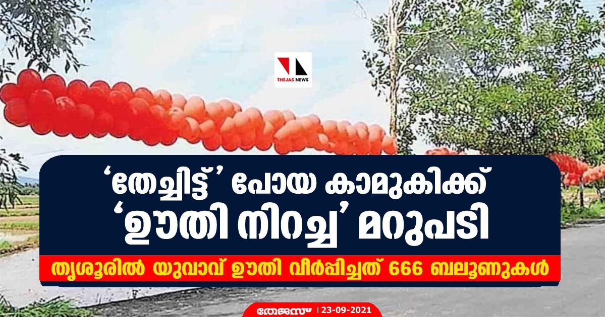 'തേച്ചിട്ട്' പോയ കാമുകിക്ക് 'ഊതി നിറച്ച' മറുപടി; തൃശൂരില് യുവാവ് ഊതി വീര്പ്പിച്ചത് 666 ബലൂണുകള്