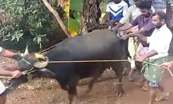 വിരണ്ടോടിയ പോത്തിനെ നാട്ടുകാരും ഫയര്ഫോഴ്സും പിടികൂടി