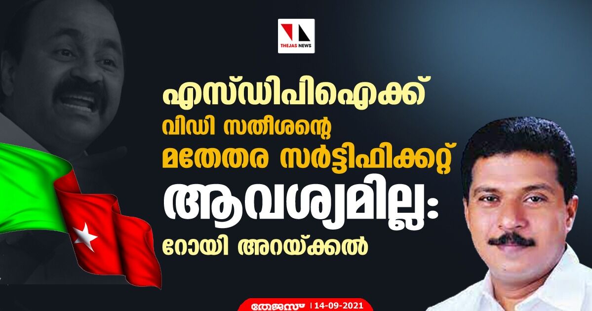 എസ്ഡിപിഐക്ക് വിഡി സതീശന്റെ മതേതര സര്ട്ടിഫിക്കറ്റ് ആവശ്യമില്ല: റോയി അറയ്ക്കല്