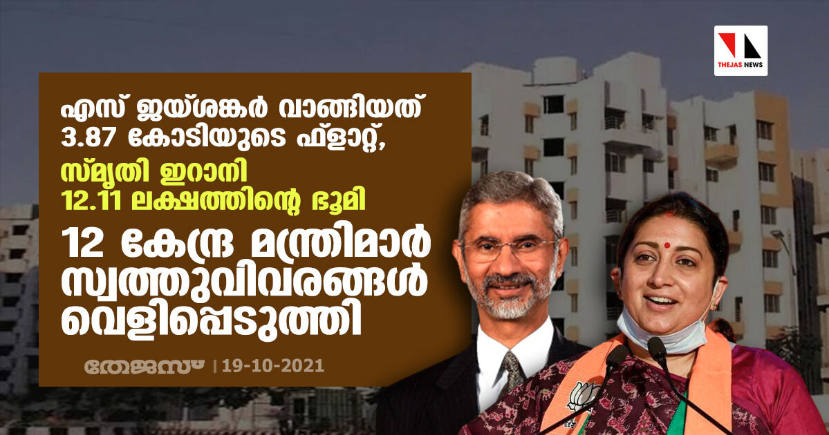 എസ് ജയ്ശങ്കര് വാങ്ങിയത് 3.87 കോടിയുടെ ഫ്ളാറ്റ്, സ്മൃതി ഇറാനി 12.11 ലക്ഷത്തിന്റെ ഭൂമി; 12 കേന്ദ്ര മന്ത്രിമാര് സ്വത്തുവിവരങ്ങള് വെളിപ്പെടുത്തി