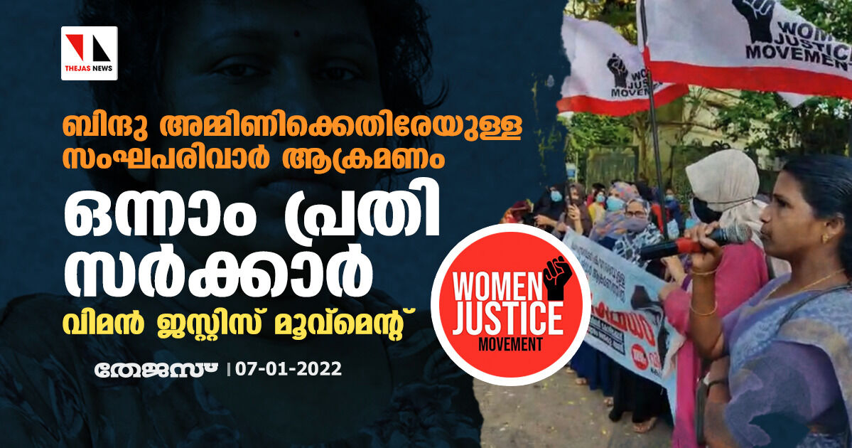 ബിന്ദു അമ്മിണിക്കെതിരേയുള്ള സംഘപരിവാര് ആക്രമണം; ഒന്നാം പ്രതി സര്ക്കാര്:വിമന് ജസ്റ്റിസ് മൂവ്മെന്റ്