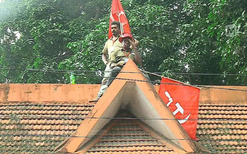 തിരുവനന്തപുരം: തിരുവനന്തപുരം കോര്പ്പറേഷന് മുന്നില് ആത്മഹത്യ ഭീഷണി മുഴക്കി ശുചീകരണ തൊഴിലാളികള്. സിപിഎമ്മിന്റെ കൊടികളുമേന്തി പെട്രോള് കുപ്പികളുമായി മരത്തിന് മുകളില് കയറി നിന്നാണ് തൊഴിലാളികളുടെ ആത്മഹത്യാ ഭീഷണി. ശുചീകരണ തൊഴിലാളികളുടെ മാലിന്യം ശേഖരിക്കുന്ന 12-ഓളം വാഹനങ്ങള് നഗരസഭ പിടിച്ചെടുത്തിരുന്നു. ഇത് വിട്ടുകിട്ടണമെന്നതാണ് ഇവരുടെ പ്രധാന ആവശ്യം. കവാടത്തിന് മുകളില് കയറിയ പ്രതിഷേധിച്ച നാല് ശുചീകരണ തൊഴിലാളികളെ അഗ്നിശമന സേനയും പോലീസും അനുനയിപ്പിച്ച് താഴെയിറക്കി സ്റ്റേഷനിലേയ്ക്ക് മാറ്റി. നഗരസഭയ്ക്ക് മുന്നില് കുടില്കെട്ടി പ്രതിഷേധിച്ചിരുന്ന തൊഴിലാളികള് മുദ്രാവാക്യം വിളികളുമായി അകത്തുകയറിയത് സംഘര്ഷാവസ്ഥയുണ്ടാക്കി.