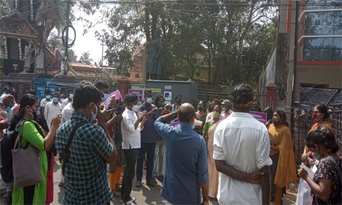 വെള്ളയമ്പലം അക്കമ്മ ചെറിയാന് പാര്ക്കിന് സമീപത്ത് നിന്നാരംഭിച്ച മാര്ച്ച് ദേവസ്വം ബോര്ഡ് ജങ്ഷനില് പോലിസ് തടഞ്ഞു. തുടര്ന്ന് ശ്രീജ നെയ്യാറ്റിന്കര, എം സുല്ഫത്ത്, ശീതള് ശ്യാം, എംകെ ദാസന്, കെ വേണുഗോപാല്, സബീന ലുക്മാന്,ടിഎസ് പ്രദീപ്, സീറ്റ ദാസന് എന്നിവര് സംസാരിച്ചു.