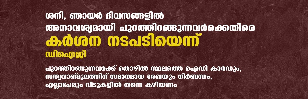 ശനി, ഞായര് ദിവസങ്ങളില് അനാവശ്യമായി പുറത്തിറങ്ങുന്നവര്ക്കെതിരെ കര്ശന നടപടിയെന്ന് ഡിഐജി