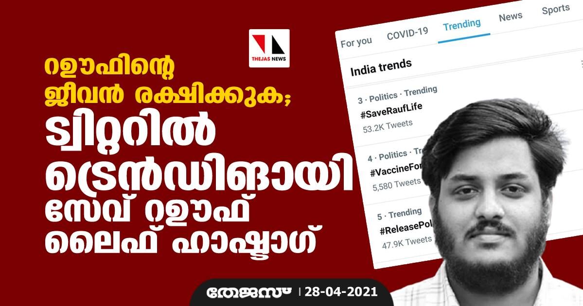 റഊഫിന്റെ ജീവന് രക്ഷിക്കുക; ട്വിറ്ററില് ട്രെന്ഡിങായി സേവ് റഊഫ് ലൈഫ് ഹാഷ്ടാഗ്