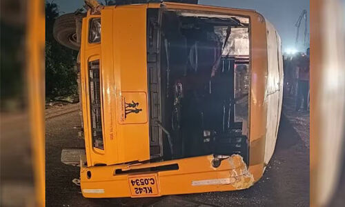സ്കൂള് ബസ്സ് മറിഞ്ഞ് കബഡി താരങ്ങളായ 13 വിദ്യാര്ഥിനികള്ക്ക് പരിക്ക്