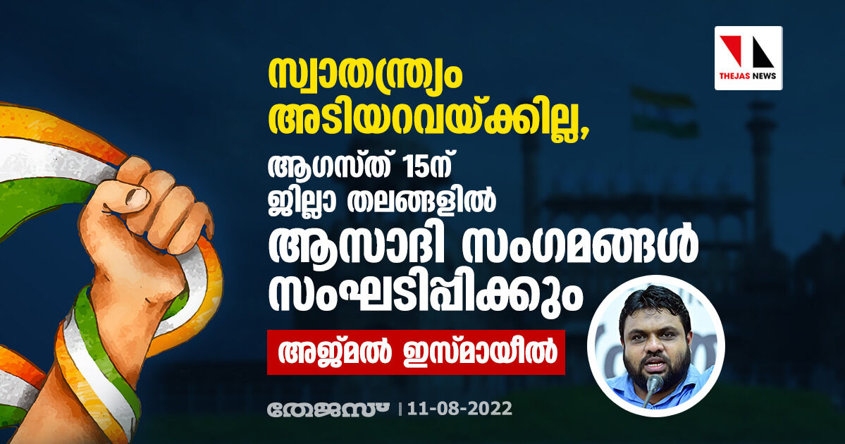സ്വാതന്ത്ര്യം അടിയറവെയ്ക്കില്ല, ആഗസ്ത് 15ന് ജില്ലാ തലങ്ങളില് ആസാദി സംഗമങ്ങള് സംഘടിപ്പിക്കുമെന്ന് അജ്മല് ഇസ്മായീല്