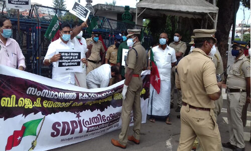 ബിജെപി സംസ്ഥാന പ്രസിഡന്റ് കെ സുരേന്ദ്രനെ അറസ്റ്റ് ചെയ്യണം; എസ്ഡിപിഐ സെക്രട്ടേറിയറ്റ് മാര്ച്ചില് നേരിയ സംഘര്ഷം; നേതാക്കളെ പോലിസ് കസ്റ്റഡിയിലെടുത്തെങ്കിലും നിരുപാധികം വിട്ടയച്ചു