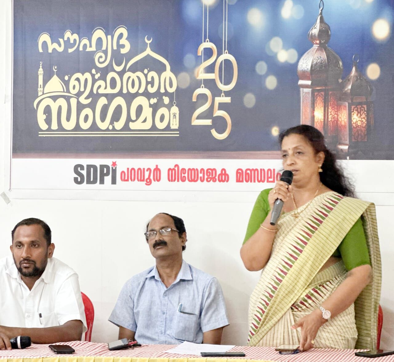 ഒരു വിഭാഗത്തിൻ്റെ ആഘോഷങ്ങൾ നടക്കുമ്പോൾ അപരന്റെ ആരാധനാലയങ്ങൾ പായകൊണ്ട് മൂടുന്ന ഈ കാലത്ത് എസ്ഡിപിഐ സംഘടിപ്പിച്ച സൗഹൃദ ഇഫ്താർ എന്തുകൊണ്ടും പ്രശംസനീയമാണെന്ന്മുൻ എംപിയും മുതിർന്ന കോൺഗ്രസ് നേതാവുമായ കെ പി ധനപാലൻ അഭിപ്രായപ്പെട്ടു.പറവൂർ മുനിസിപ്പൽ ചെയർപേഴ്സൺ ബീന ശശിധരൻ, വൈസ് ചെയർമാൻ എം ജെ രാജു , കൗൺസിലർ ജഹാംഗീർ വെടിമറ, വിമൻ ഇന്ത്യ മൂവ്മെൻറ് ദേശീയ വൈസ് പ്രസിഡൻറ് കെ കെ റൈഹാനത്ത് ടീച്ചർ, സംസ്ഥാന പ്രസിഡന്റ് സുനിതാ നിസാർ, മണ്ഡലം പ്രസിഡണ്ട് ഫിദാ സിയാദ്, വെൽഫെയർ പാർട്ടി ജില്ലാ വൈസ് പ്രസിഡന്റ് കെ എം ഷെഫ്റിൻ, പറവൂർ മണ്ഡലം സെക്രട്ടറി ഒ എ നാസർ, സി പി ഐ കോട്ടുവള്ളി ലോക്കൽ കമ്മിറ്റി അസിസ്റ്റൻ്റ് സെക്രട്ടറി ടി എ ബഷീർ ,