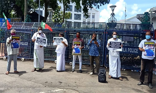 തിരുവനന്തപുരം: കള്ളപ്പണക്കേസില് ബിജെപി നേതാക്കളെ രാജ്യദ്രോഹക്കുറ്റത്തിന് അറസ്റ്റ് ചെയ്യണമെന്നാവശ്യപ്പെട്ട് എസ്ഡിപിഐ സെക്രട്ടേറിയേറ്റ് മാര്ച്ച് നടത്തി. രാജ്യദ്രോഹക്കുറ്റത്തിന് ബിജെപി നേതാക്കളെ അറസ്റ്റ് ചെയ്യണമെന്നാവശ്യപ്പെട്ട് സംസ്ഥാനത്താകെ ഇന്ന് പാര്ട്ടി പ്രതിഷേധ പരിപാടികള് നടത്തുകയാണ്. ഇതിന്റെ ഭാഗമായാണ് സെക്രട്ടേറിയറ്റിന് മുന്നിലേക്ക് മാര്ച്ച് നടന്നത്. മാര്ച്ച് പാര്ട്ടി ജില്ലാ ജനറല് സെക്രട്ടറി അഷ്റഫ് പ്രാവച്ചമ്പലം മാര്ച്ച ഉദ്ഘാടനം ചെയ്തു.