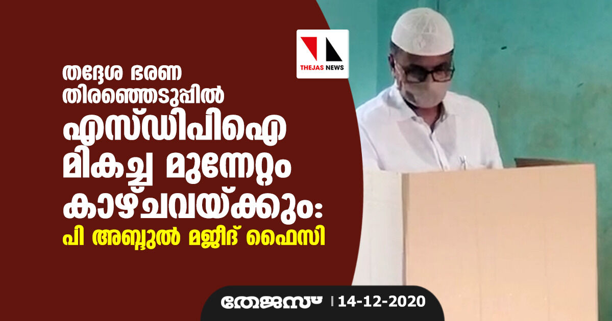 തദ്ദേശ ഭരണ തിരഞ്ഞെടുപ്പില് എസ്.ഡി.പി.ഐ മികച്ച മുന്നേറ്റം കാഴ്ചവെക്കും: പി അബ്ദുല് മജീദ് ഫൈസി