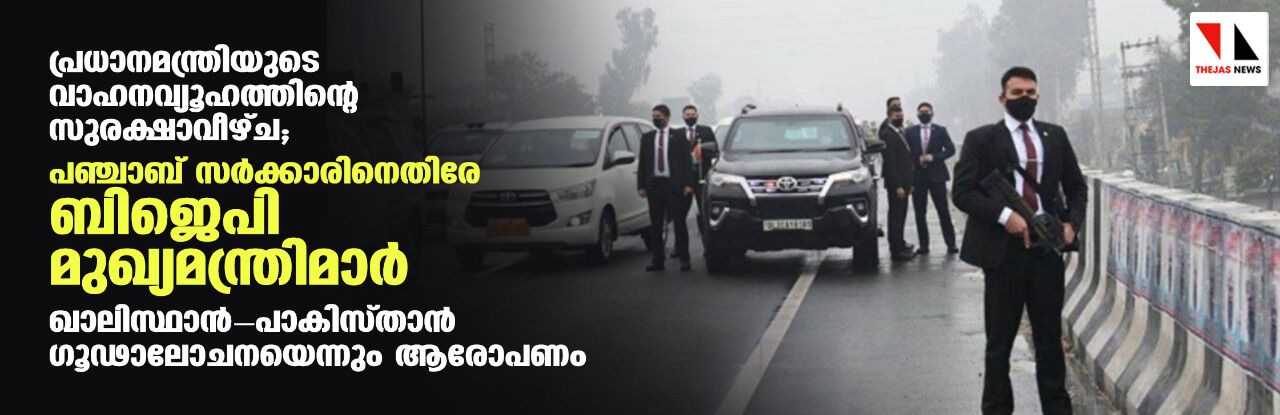 പ്രധാനമന്ത്രിയുടെ വാഹനവ്യൂഹത്തിന്റെ സുരക്ഷാവീഴ്ച; പഞ്ചാബ് സര്ക്കാരിനെതിരേ ബിജെപി മുഖ്യമന്ത്രിമാര്; ഖാലിസ്ഥാന്-പാകിസ്താന് ഗൂഢാലോചനയെന്നും ആരോപണം