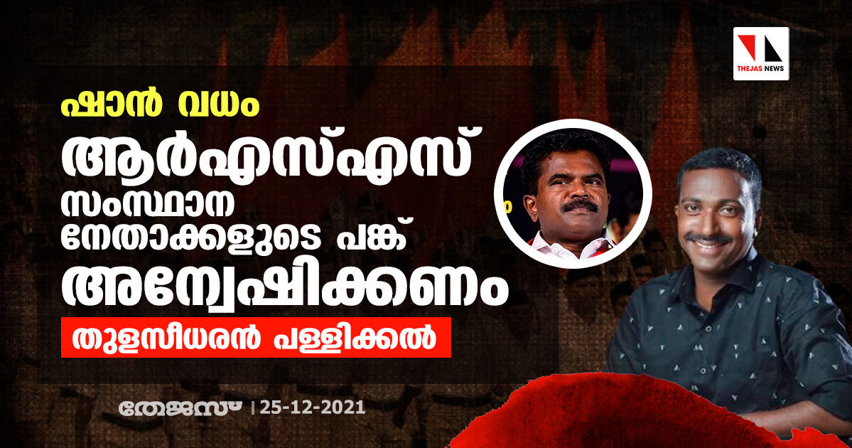 ഷാന് വധം: ആര്എസ്എസ് സംസ്ഥാന നേതാക്കളുടെ പങ്ക് അന്വേഷിക്കണമെന്ന് തുളസീധരന് പള്ളിക്കല്
