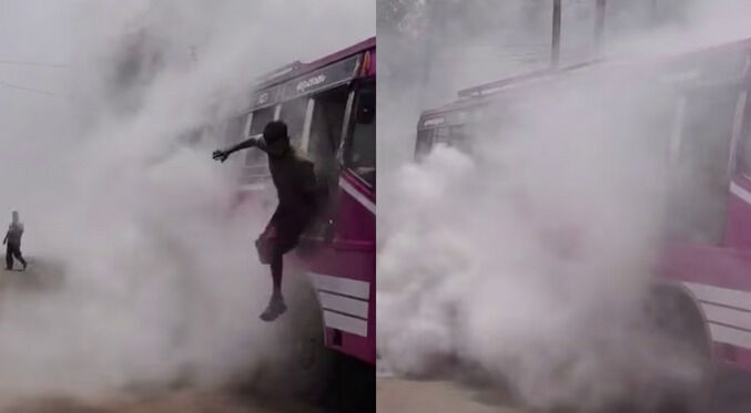ഓടിക്കൊണ്ടിരുന്ന ബസിൽ നിന്ന് പുക ഉയർന്ന് ആശങ്ക; ചാടി രക്ഷപ്പെട്ട് ജീവനക്കാർ