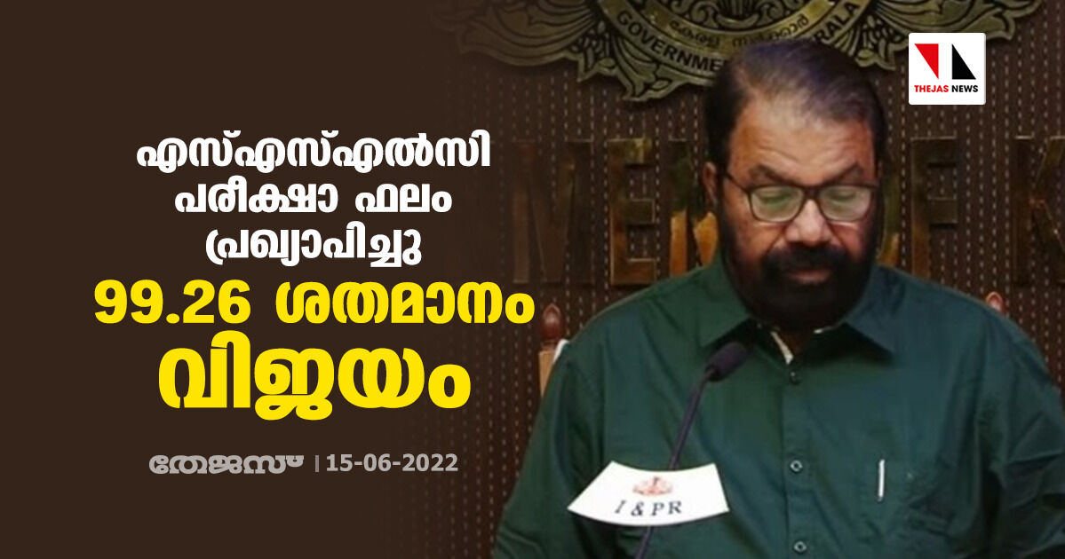 എസ്എസ്എല്സി പരീക്ഷാ ഫലം പ്രഖ്യാപിച്ചു; 99.26 ശതമാനം വിജയം
