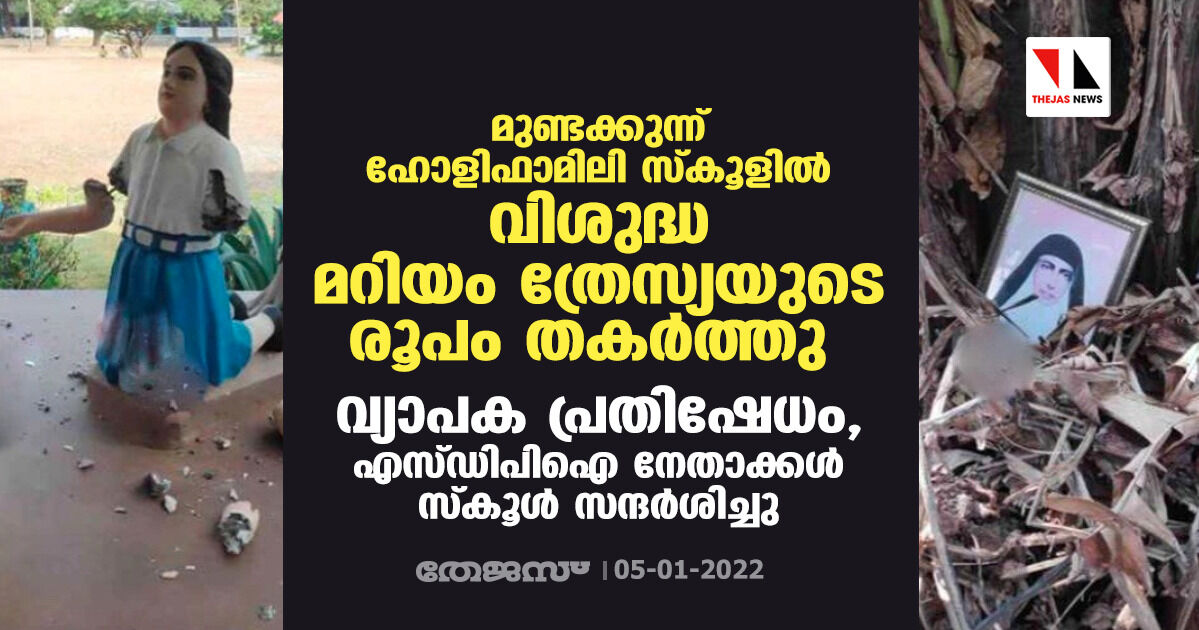മുണ്ടക്കുന്ന് ഹോളിഫാമിലി സ്കൂളിൽ വിശുദ്ധ മറിയം ത്രേസ്യയുടെ രൂപം തകർത്തു; വ്യാപക പ്രതിഷേധം, എസ്ഡിപിഐ നേതാക്കൾ സ്കൂൾ സന്ദർശിച്ചു