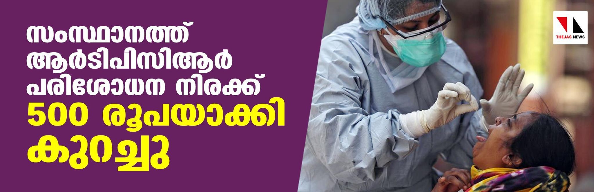 സംസ്ഥാനത്ത് സ്വകാര്യ ലാബുകളിലെ ആര്ടിപിസിആര് പരിശോധന നിരക്ക് 500 രൂപയാക്കി കുറച്ചു