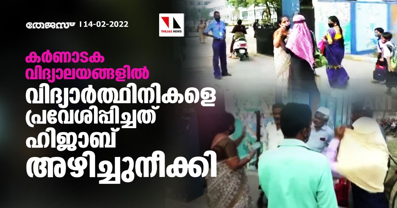 കര്ണാടക വിദ്യാലയങ്ങളില് വിദ്യാര്ത്ഥിനികളെ പ്രവേശിപ്പിച്ചത് ഹിജാബ് അഴിച്ചുനീക്കി