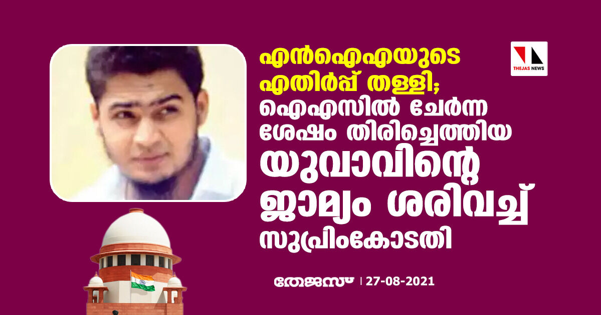 എന്ഐഎയുടെ എതിര്പ്പ് തള്ളി; ഐഎസില് ചേര്ന്ന ശേഷം തിരിച്ചെത്തിയ യുവാവിന്റെ ജാമ്യം ശരിവച്ച് സുപ്രീംകോടതി