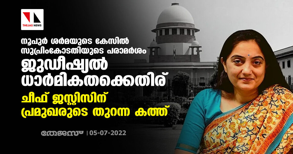 നൂപുര് ശര്മയുടെ കേസില് സുപ്രിംകോടതിയുടെ പരാമര്ശം ജുഡീഷ്യല് ധാര്മികതക്കെതിര്: ചീഫ് ജസ്റ്റിസിന് പ്രമുഖരുടെ തുറന്ന കത്ത്