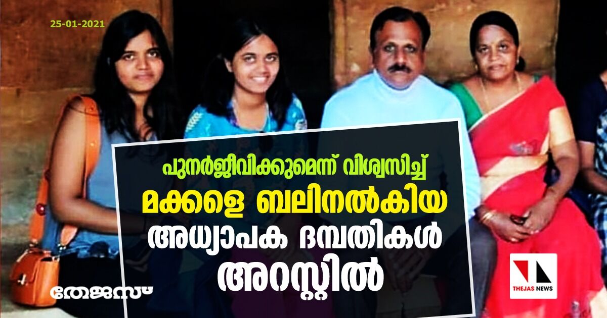 പുനര്ജീവിക്കുമെന്ന് വിശ്വസിച്ച് മക്കളെ ബലിനല്കിയ അധ്യാപക ദമ്പതികള് അറസ്റ്റില്