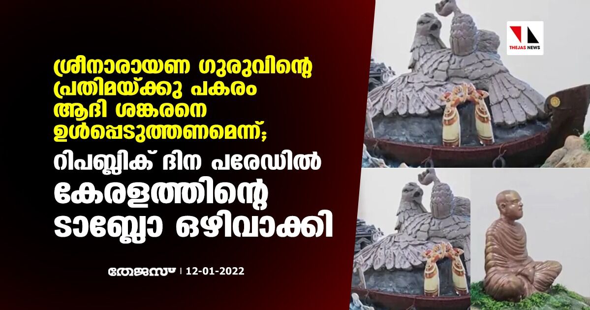 ശ്രീനാരായണ ഗുരുവിന്റെ പ്രതിമയ്ക്കു പകരം ആദി ശങ്കരനെ ഉള്പ്പെടുത്തണമെന്ന്; റിപബ്ലിക് ദിന പരേഡില് കേരളത്തിന്റെ ടാബ്ലോ ഒഴിവാക്കി