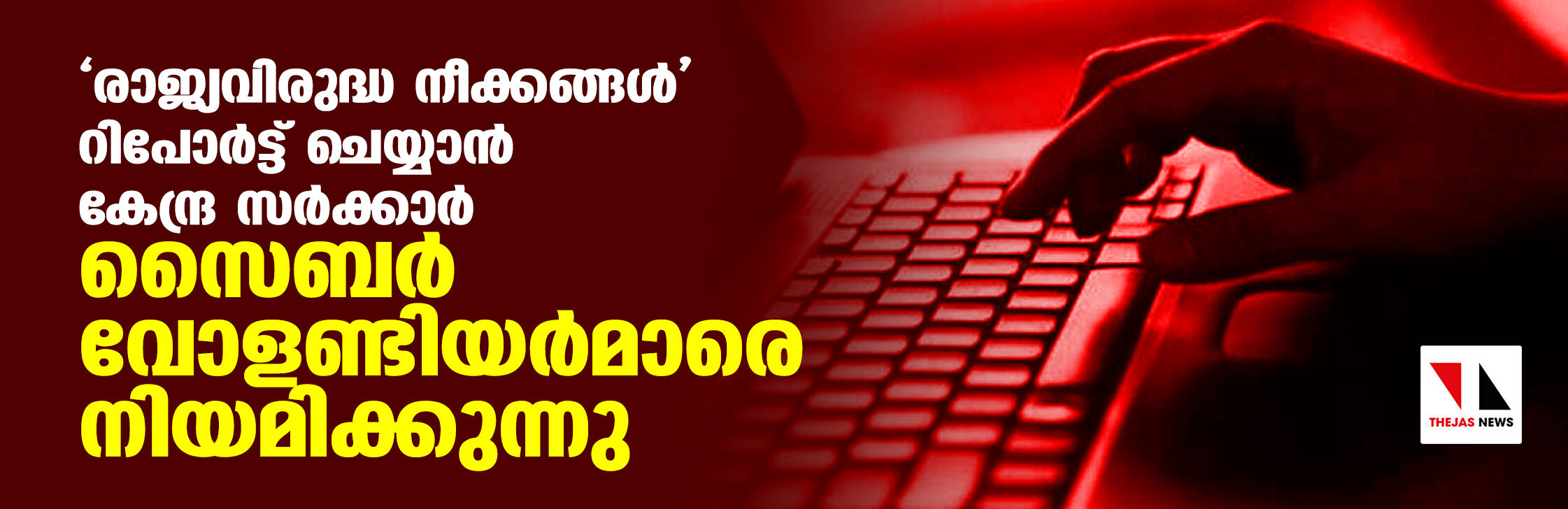 'രാജ്യവിരുദ്ധ നീക്കങ്ങള്' റിപോര്ട്ട് ചെയ്യാന് കേന്ദ്ര സര്ക്കാര് സൈബര് വോളണ്ടിയര്മാരെ നിയമിക്കുന്നു