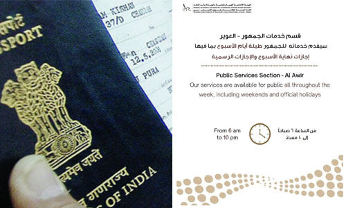 അല് അവീറിലുള്ള എമിഗ്രേഷന് കസ്റ്റമര് ഹാപ്പിനസ് സെന്റര് ആഴ്ചയില് എല്ലാ ദിവസവും പ്രവര്ത്തിക്കും
