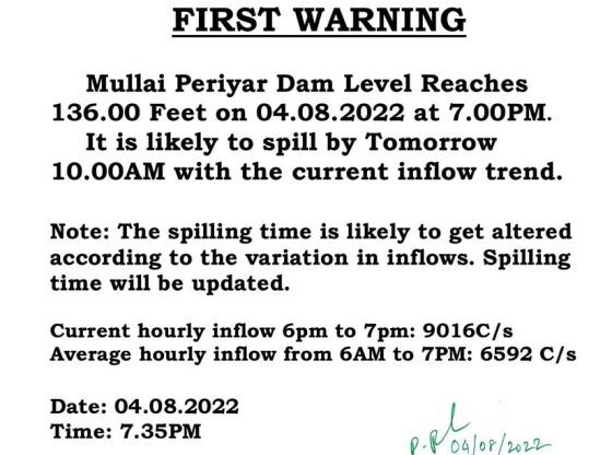 മുല്ലപെരിയാര് ഡാമില് ആദ്യ മുന്നറിയിപ്പ് നല്കി; ഷട്ടര് ഇന്ന് തുറന്നേക്കും