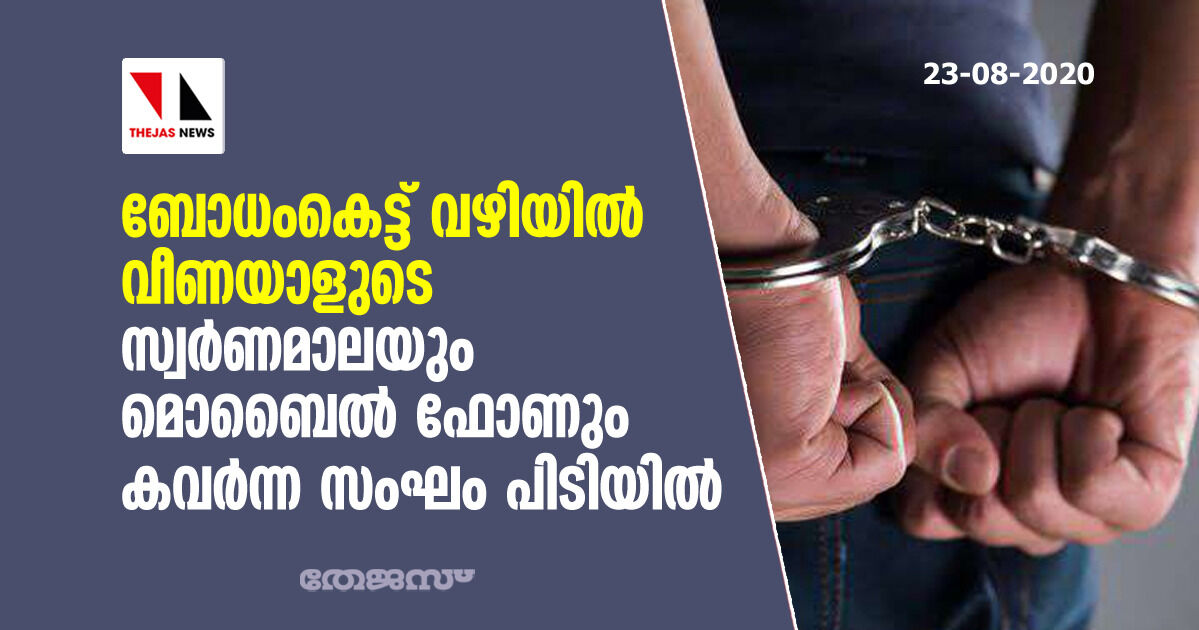 ബോധംകെട്ട് വീണയാളുടെ സ്വര്ണമാലയും മൊബൈല് ഫോണും കവര്ന്ന സംഘം പിടിയില്