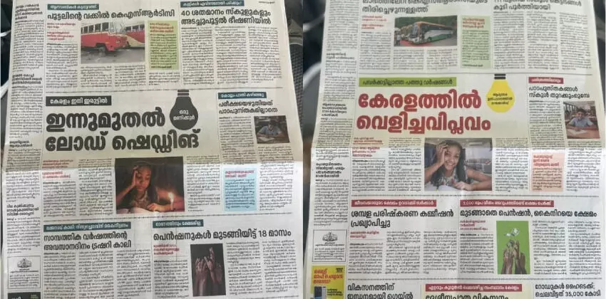 അടുത്ത പേജില് ഇന്നത്തെ സര്ക്കാരിന്റെ നേട്ടങ്ങളും പരസ്യമാക്കി. കഴിഞ്ഞയാഴ്ചയാണ് ഇരുണ്ടകാലം എന്ന വെബ്സൈറ്റ് തുടങ്ങിയത്. 10 വര്ഷം മുമ്പ് ഭരിച്ച യുഡിഎഫ് കാലത്ത് കേരളം എങ്ങനെയായിരുന്നു എന്നതാണ് പ്രചാരണം നടത്തുന്നത്. ഇതിന്റെ തുടര്ച്ചായയാണ് പത്രങ്ങളിലെ പരസ്യം.