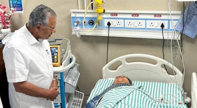 പ്രതിഷേധക്കാരെ കണ്ട് പെട്ടെന്ന് തിരിഞ്ഞു നോക്കിയതിൽ കഴുത്തുളുക്കിയ മന്ത്രിയെ സ്ട്രെച്ചറിലെടുക്കുന്നു, ICU വിലാക്കുന്നു.