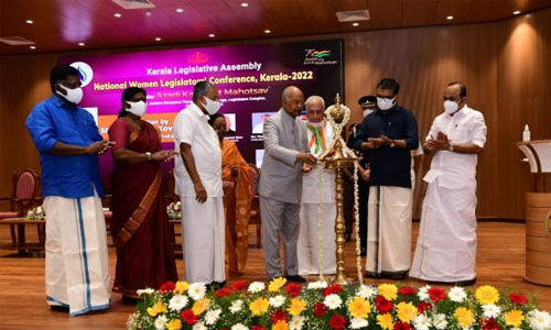 തിരുവനന്തപുരം: കേരള നിയമസഭയില് നടക്കുന്ന ഇന്ത്യയിലെ വനിതാ സാമാജികരുടെ ദ്വിദിന സമ്മേളനം രാഷ്ട്രപതി രാംനാഥ് കോവിന്ദ് രാവിലെ 11.30ന് നിയമസഭയിലെ ശങ്കരനാരായണന് തമ്പി ഹാളില് ഉദ്ഘാടനം ചെയ്തു. ചടങ്ങില് ഗവര്ണര് ആരിഫ് മുഹമ്മദ്ഖാന്, മുഖ്യമന്ത്രി പിണറായി വിജയന്, സ്പീക്കര് എം.ബി രാജേഷ്, വനിതാ മന്ത്രിമാരായ വീണാ ജോര്ജ്, ഡോ. ആര്. ബിന്ദു, ജെ.ചിഞ്ചുറാണി, പ്രതിപക്ഷ നേതാവ് വി.ഡി. സതീശന്, വനിത എം.എല്.എമാര്, മറ്റു ജനപ്രതിനിധികള് തുടങ്ങിയവര് പങ്കെടുത്തു.