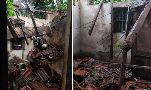 കനത്ത മഴയില് വീട്ടുകാര് ഉറങ്ങിക്കൊണ്ടിരിക്കെ മേല്ക്കൂര തകര്ന്നുവീണു; കുടുംബം അത്ഭുതകരമായി രക്ഷപ്പെട്ടു