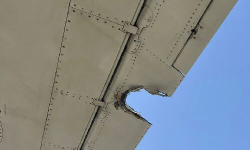 ജമ്മുവിയിലേക്ക് പോകുന്ന വിമാനമായിരുന്നു. യാത്രക്കാരെ താഴെയിറക്കി മറ്റൊരുവിമാനത്തില് ജമ്മുവിലേക്കയച്ചു. ചിറകിന്റെ ഭാഗത്ത് അല്പ്പം പൊളിഞ്ഞിട്ടുണ്ട്.