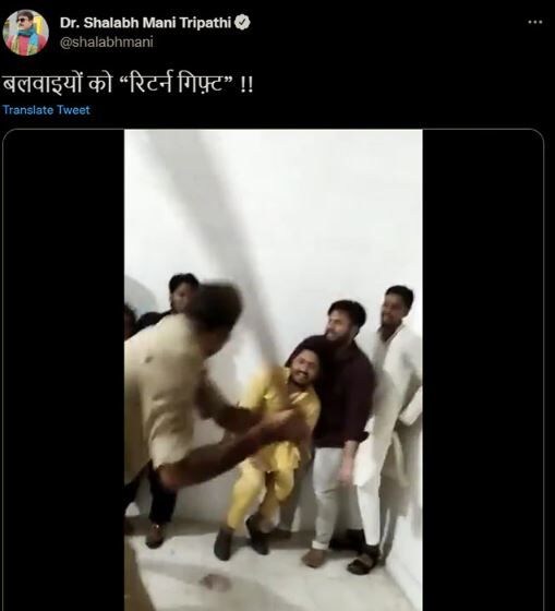 ലഖ്നോ: പ്രവാചകനിന്ദക്കെതിരേ പ്രതിഷേധിച്ച യുപിയിലെ ഒമ്പത് യുവാക്കളെ പോലിസ് തല്ലിച്ചതക്കുന്ന ക്രൂരദൃശ്യങ്ങള് പ്രകോപനപരമായ ശീര്ഷകത്തോടെ പങ്കുവച്ച എംഎല്എക്കെതിരേ വ്യാപക പ്രതിഷേധം. രണ്ട് ദിവസം മുമ്പ് നടന്ന ഒരു സംഭവത്തിന്റെ വീഡിയോ ദൃശ്യങ്ങളാണ് യുപി ബിജെപി എംഎല്എ ശലഭ് മണി ത്രിപാഠി ട്വിറ്ററിലൂടെ പങ്കുവച്ചത്. വീഡിയോക്ക് കലാപകാരികള്ക്കുള്ള സമ്മാനമെന്ന ശീര്ഷകവും ചേര്ത്തു.