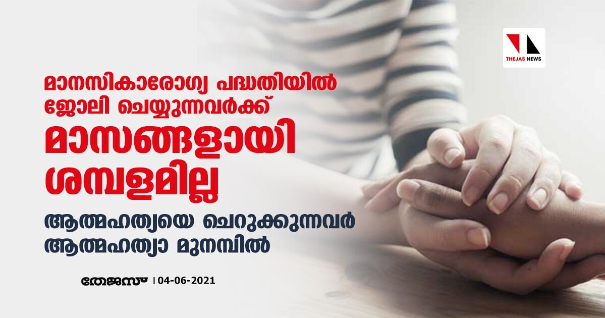 മാനസികാരോഗ്യ പദ്ധതിയില് ജോലി ചെയ്യുന്നവര്ക്ക് മാസങ്ങളായി ശമ്പളമില്ല; ആത്മഹത്യയെ ചെറുക്കുന്നവര് ആത്മഹത്യാ മുനമ്പില്
