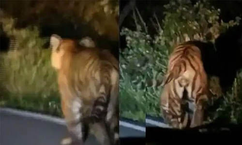 ഇടുക്കി: മൂന്നാര് രാജമലയെ ഭീതിയിലാക്കി വീണ്ടും കടുവയിറങ്ങി. ഇന്നലെ രാത്രി ഒമ്പത് മണിയോടെയാണ് മൂന്നാറില് വീണ്ടും കടുവയിറങ്ങിയത്. റോഡിലൂടെ ഓടിപ്പോവുന്ന കടുവയുടെ ദൃശ്യങ്ങളാണ് പുറത്തുവന്നത്. ഇതോടെ മൂന്നാര് രാജമലയില് പ്രദേശവാസികള്ക്ക് ജാഗ്രതാ നിര്ദേശം നല്കിയിരിക്കുകയാണ് പോലിസ്. കടുവ അക്രമകാരിയായതിനാല് വീടിനുള്ളില് നിന്നും പുറത്തിറങ്ങരുതെന്നാണ് നിര്ദേശം. കടുവയെ പിടികൂടാന് വനംവകുപ്പ് ഊര്ജിതശ്രമം നടത്തുകയാണെന്നും പോലിസ് അറിയിച്ചു.