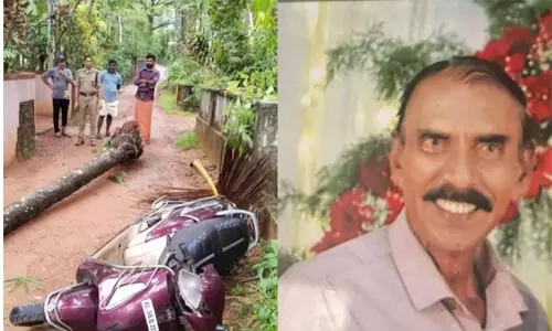 ഓടിക്കൊണ്ടിരുന്ന സ്കൂട്ടറിന് മുകളിലേക്ക് തെങ്ങുവീണ് യാത്രക്കാരന് മരിച്ചു
