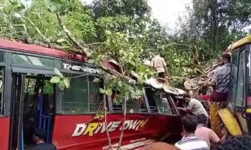 ബസിന് മുകളില് മരം വീണു; നിരവധി പേര്ക്ക് പരിക്ക്