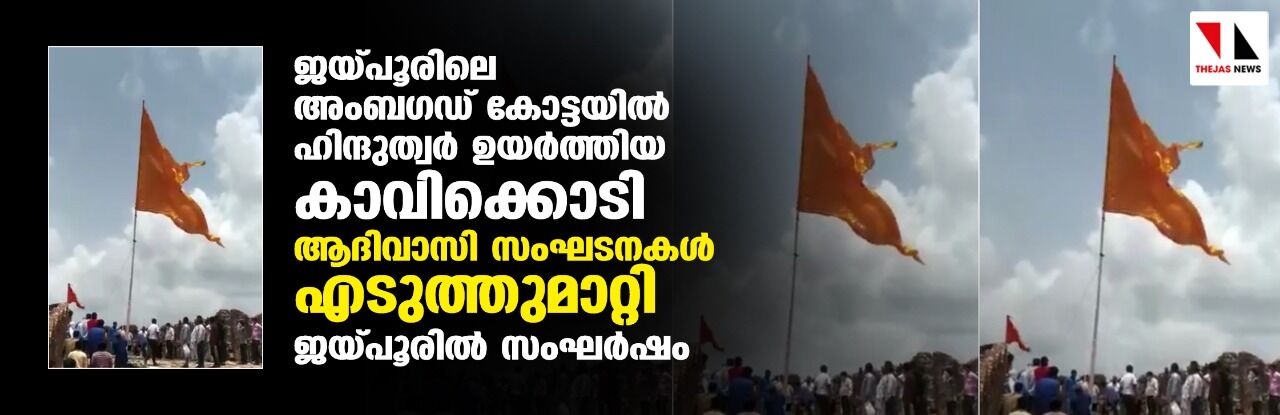 ജയ്പൂരിലെ അംബഗഡ് കോട്ടയില് ഹിന്ദുത്വര് ഉയര്ത്തിയ കാവിക്കൊടി ആദിവാസി സംഘടനകള് എടുത്തുമാറ്റി; ജയ്പൂരില് സംഘര്ഷം