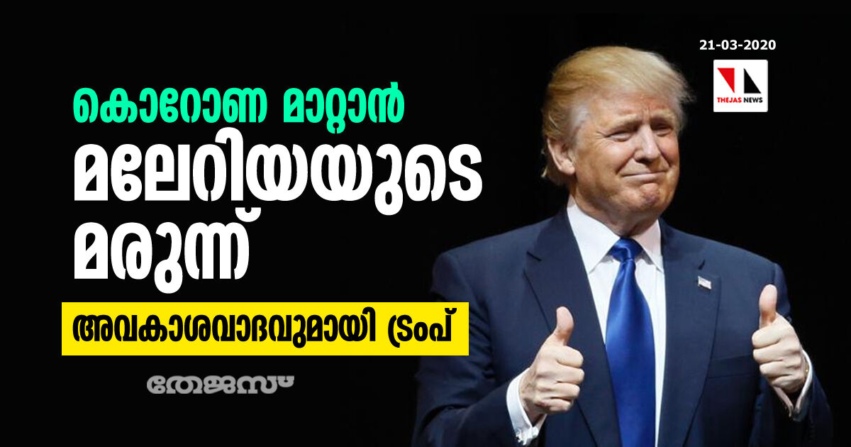 കൊറോണ മാറ്റാന് മലേറിയയുടെ മരുന്ന്; അവകാശവാദവുമായി ട്രംപ്